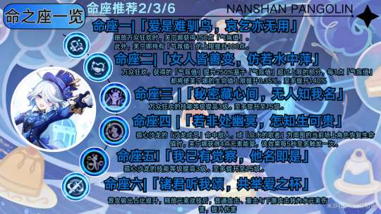 二命可以大幅度提高芙宁娜元素爆发的叠层速度,并且可以大量提升生命,芙宁娜是一个吃大招速度和生命的角色,这两个效果对于芙宁娜来说还是非常关键