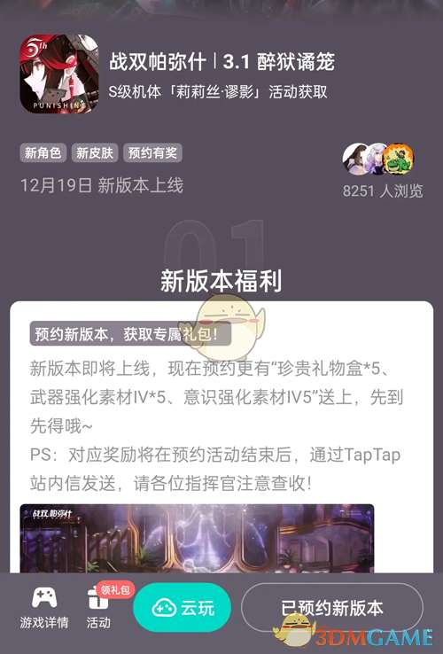 答:找到战双帕弥什TapTap首页,点击预约版本即可,也可以在游戏内点击预约新版本。