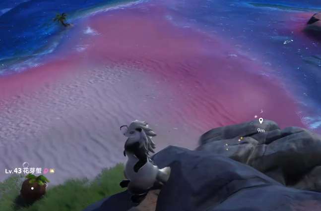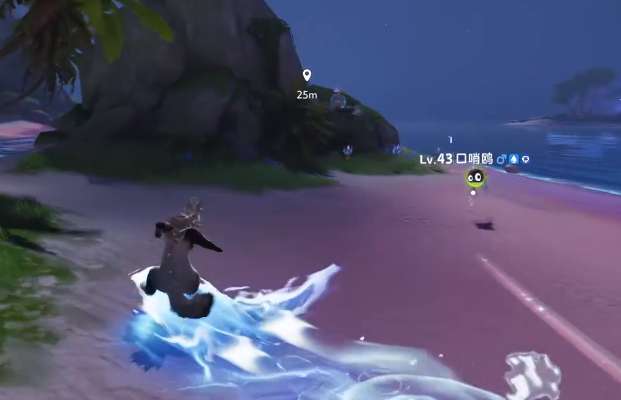 从鲸鱼骨架下来之后,玩家可以把天气修改成夜晚,然后操控角色一直向西行走,走到水边之后就可以看到一群粉色的羞羞獭,这是比较独特的夜晚形态,接着沿着这个位置继续向西,在比较靠近海边的地方,就可以找到花芽蟹和葱葱蟹的夜晚形态,然后沿着这个位置继续向南,在看到几块大石之后,玩家可以爬上去,在石头的上方会出现沙滩形态的小号欧,从石头上下来继续向南行走,可以在沙滩周围看到口哨欧,同样也是沙滩形态,想要捕捉的玩家就可以靠近战斗。