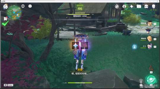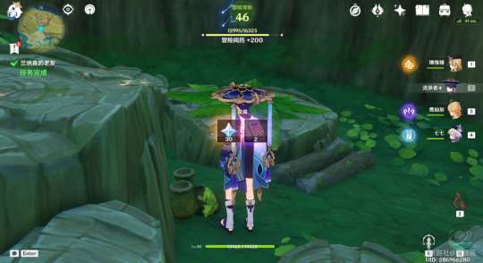 给他【12个鸣草】,然后就是帮他打一下怪,就在他的旁边很快的,就能获得【30原石】: