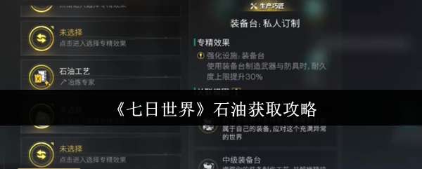软件提交 专题合集 热门手游七日世界石油怎么获取?七日世界石油工艺专精多少级解锁,石油是对于玩家来说非常重要的一种资源我,若玩家在游戏里可以提升生产效率,那么在游戏里就能率先占领先机。