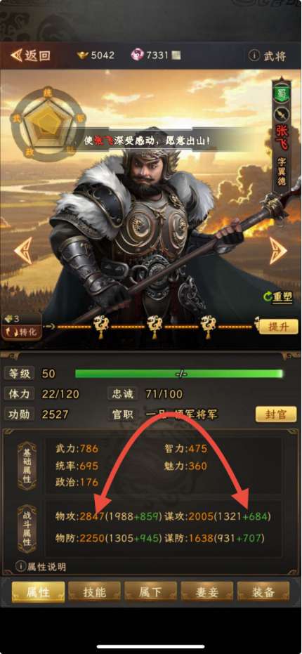 3、这游戏的特色之一,可以增加双功,物理伤害和谋略伤害,如图所示在这里可以查看