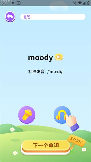 4、可以跟读,还可以录音纠正自己的口音,学习完成后点击下一题就可以了。