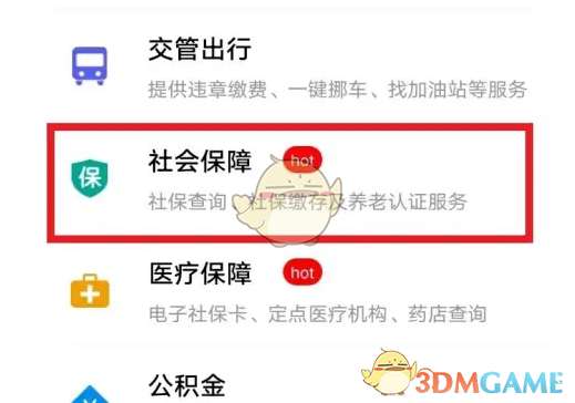 2、社会保障页面,选择城乡居民医保。