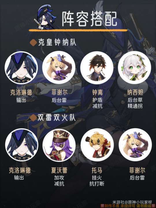 ① 克皇钟纳队:克洛琳德+菲谢尔+钟离+纳西妲