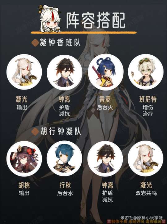 ① 凝钟香班队: 凝光+钟离+香菱+班尼特