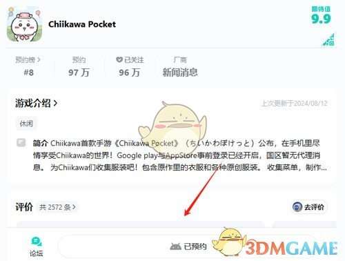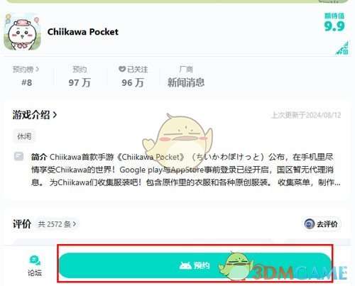 1、首先我们在TapTap中搜索ChiikawaPocket,然后点击下方的预约按钮;