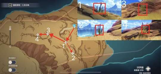 赤念果只分布于须弥地区的沙漠地带,生长于类似仙人掌的植物上(如下图),点位较为分散,请旅行者们耐心收集
