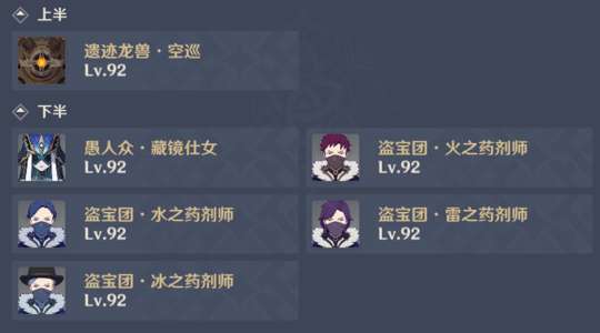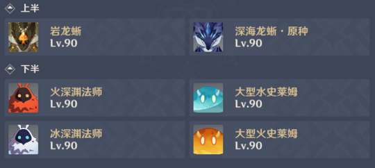 上下半:推荐携带风系角色进行聚怪,无特殊元素限制,所有队伍均可上场。