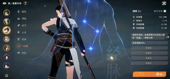 boss战开场秒放天心合御嘲讽BOSS,随后移动到侧面,避免被AOE波及队友。当BOSS释放大招时,开启金刚不坏策略卡减伤,同时等待反击触发。pvp可以优先嘲讽敌方主C神迷减攻30%,配合队友集火。残血时靠修罗腰带的7层御伤拖延时间,反击伤害能轻松反杀脆皮。虽说也可以单坦带四输出,但容错率太低,估计没人会真这么玩——双坦才是稳扎稳打的王道。诸葛玲珑的培养顺序是:3潜能>外防装备>经脉右侧强御。潜能千万别先升5潜,团队回血看似美好,不如3潜能的高频反击实用。潜能没升就去打高难本,这样很容易被秒。