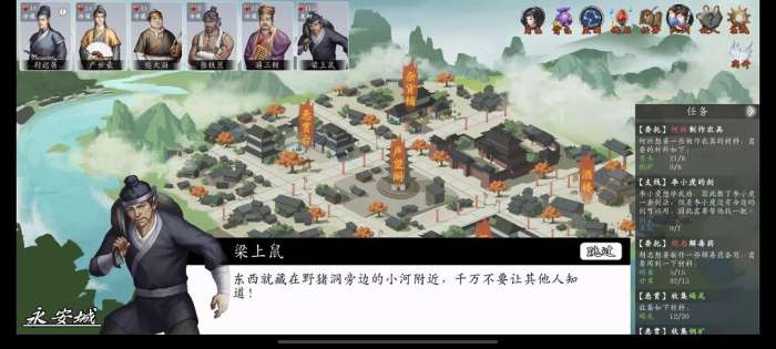 梁上鼠(好感度≥100)对话得知他偷了东西藏在野猪洞右边的河底