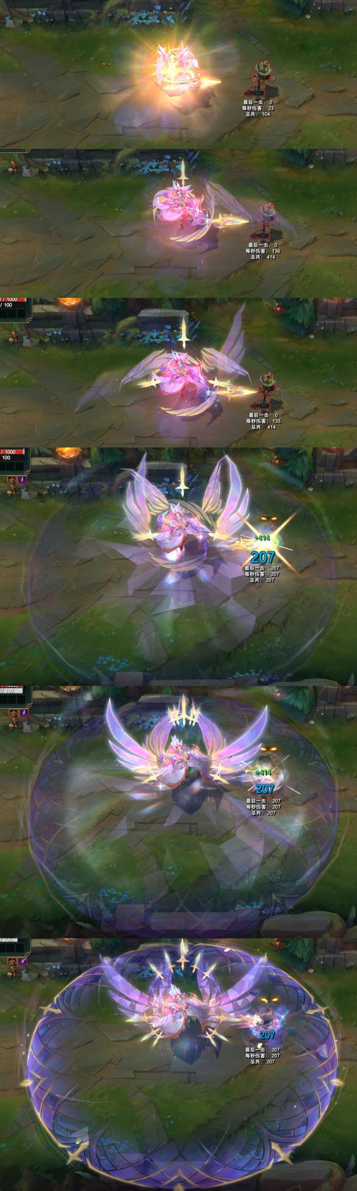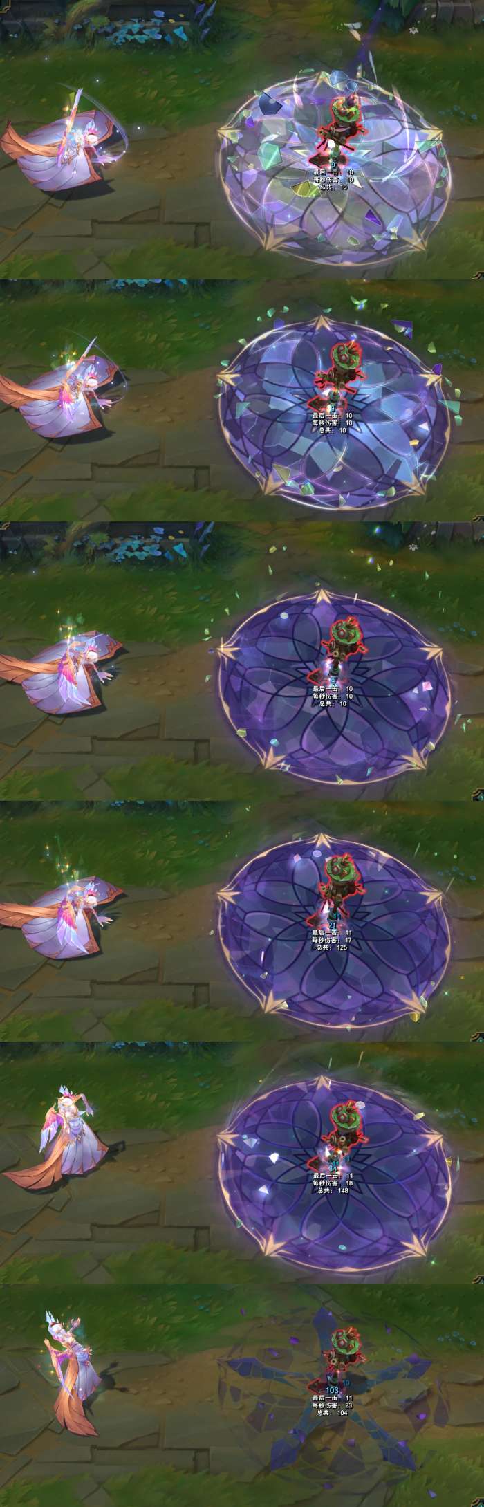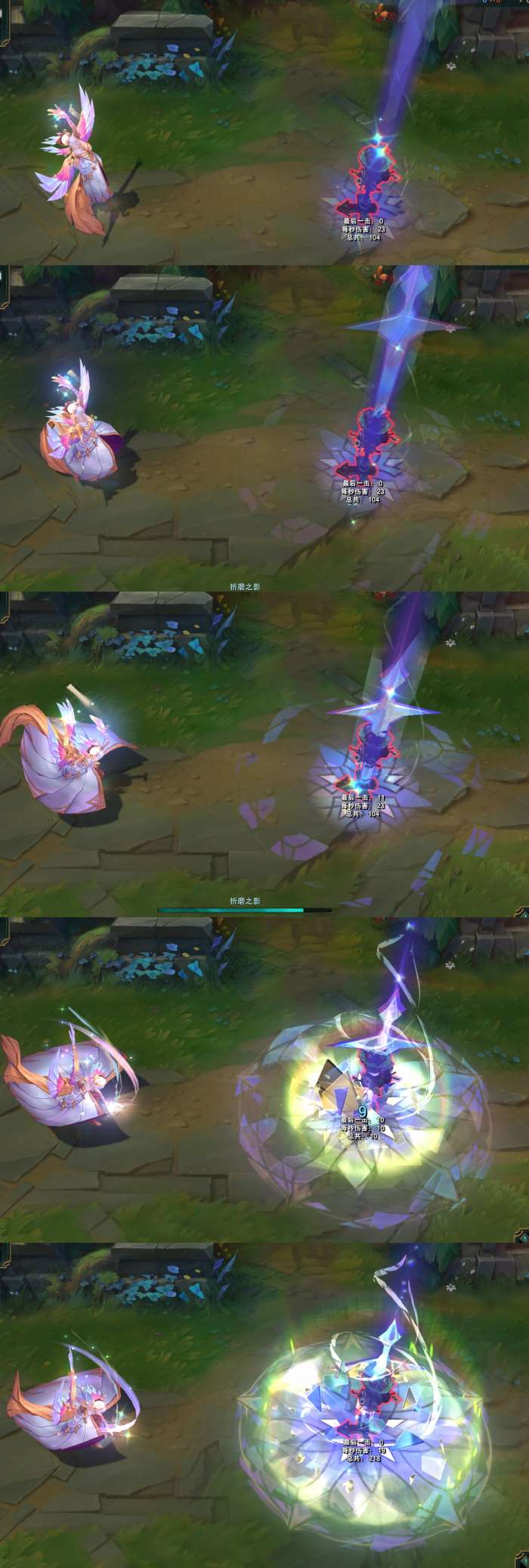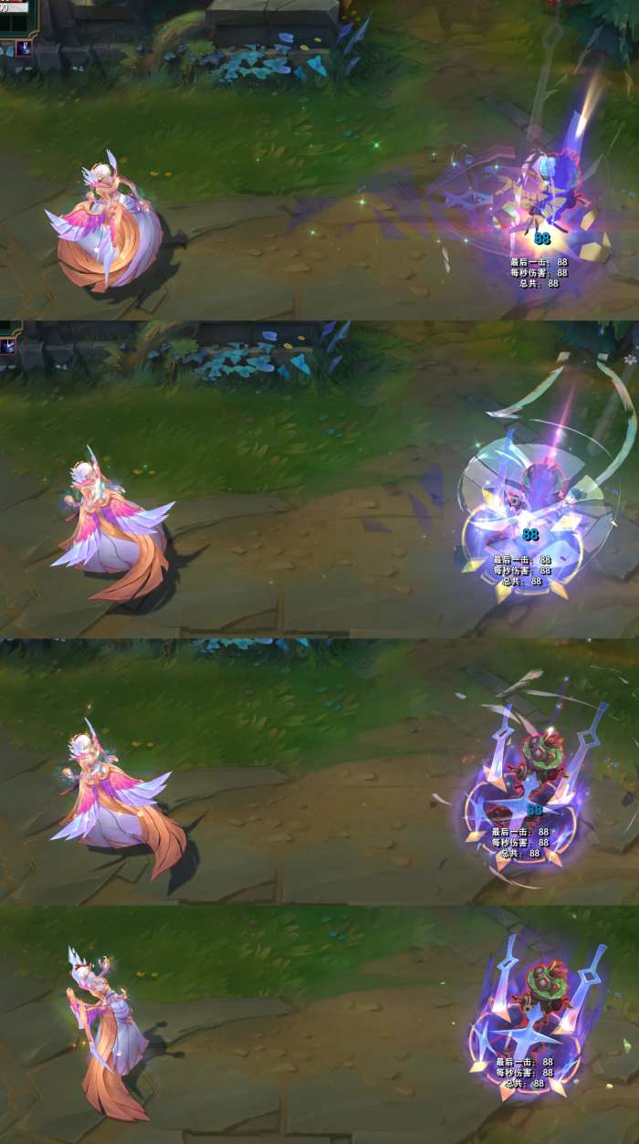 结束时,身体会变成紫色的水晶,周围出现环绕着的光效。