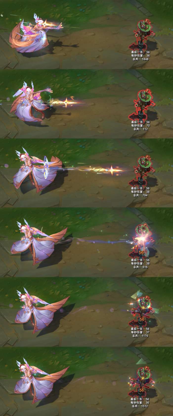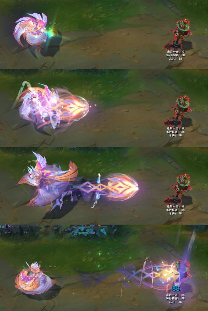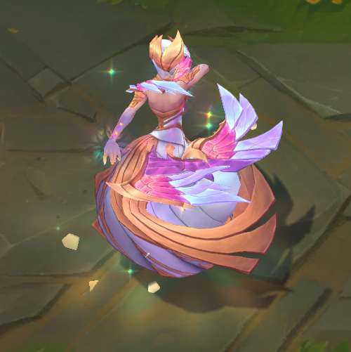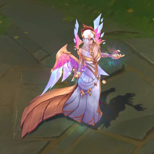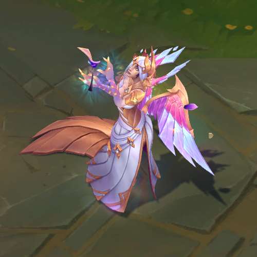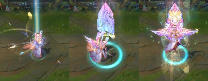 模型方面,手上不停向外散发出彩绘玻璃样子的光效,模型底部有亮光,身体周围会有闪光粒子和水晶碎块。