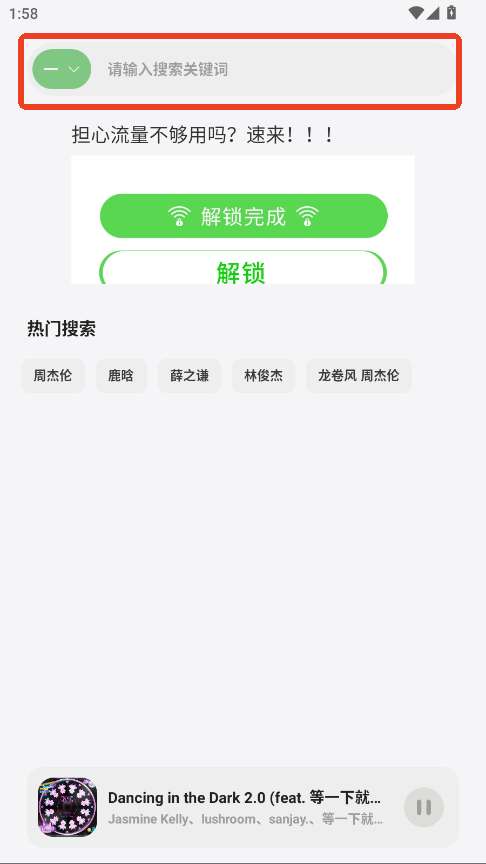 2.在搜索框内搜索你想听的歌的关键词点击搜索即可。