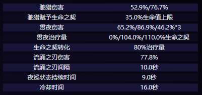 此外,狩夜之巡的夜巡状态获得强化:持续期间,治疗回复量转化为生命之契的比例提升至100%。