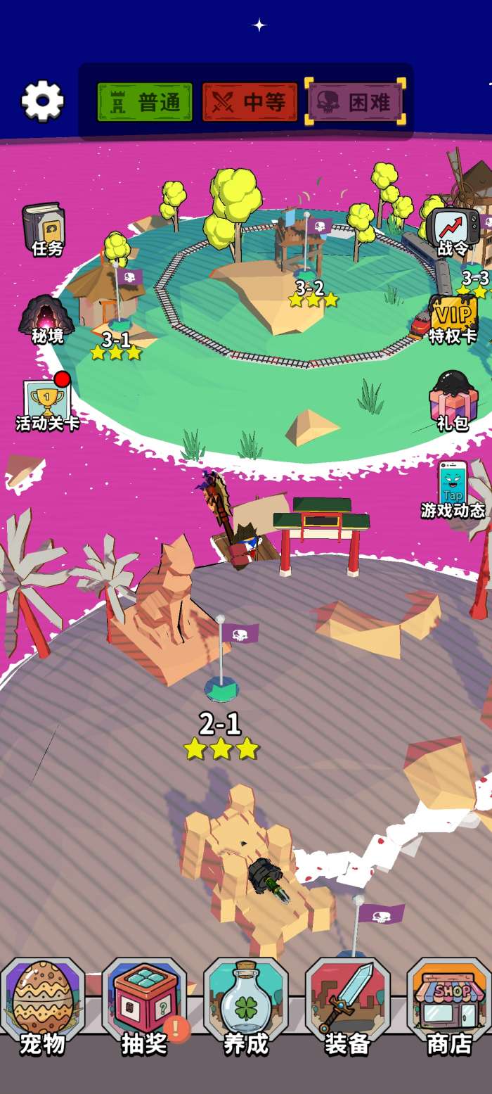 最后,别忘了还有中等和困难哦,到后面章节卡星时就必须面对强敌了。