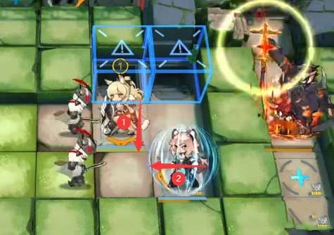 在图中标有的位置上部署史尔特尔(朝左),然后释放史尔特尔的技能,即可瞬间击败鼠王。
