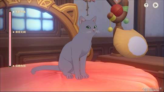● 投喂猫猫后,可在「咪呜呜宝座」召来对应的猫猫,或者直接邀请猫猫与其玩耍。旅行者可以抚摸猫猫不同部位,提升猫猫的好感度。