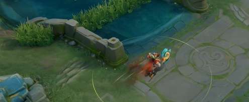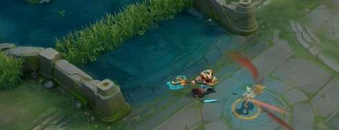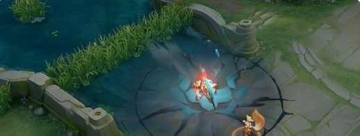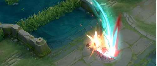 4、三技能:向前劈出一个青色的光刃,尾端带有暗红色的特效。