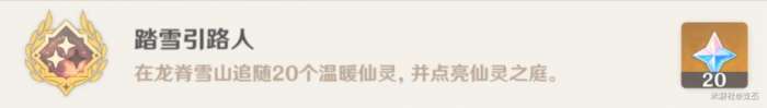 在龙脊雪山追随5/10/20只温暖仙灵归位,会获得成就——踏雪引路人,分别奖励5/10/20原石