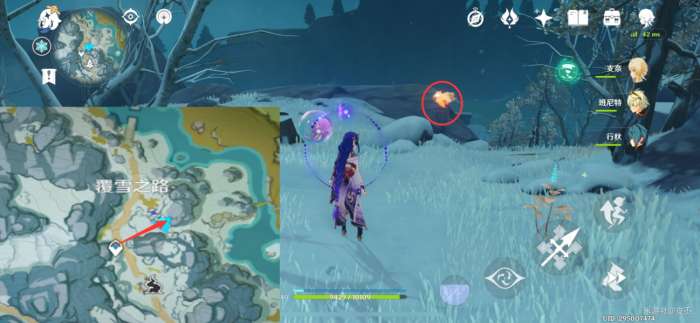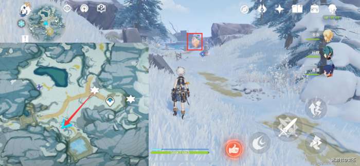 PS:大家在前往之前,注意在雪上时的严寒值,严寒值满了,会使丢失生命值;可以靠近热源,消减严寒值;建议带个火系角色,方便点燃火堆、火盆
