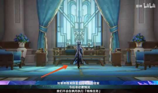 那维莱特和「仆人」再次谈话,桌子下面可以看到那维莱特的衣服