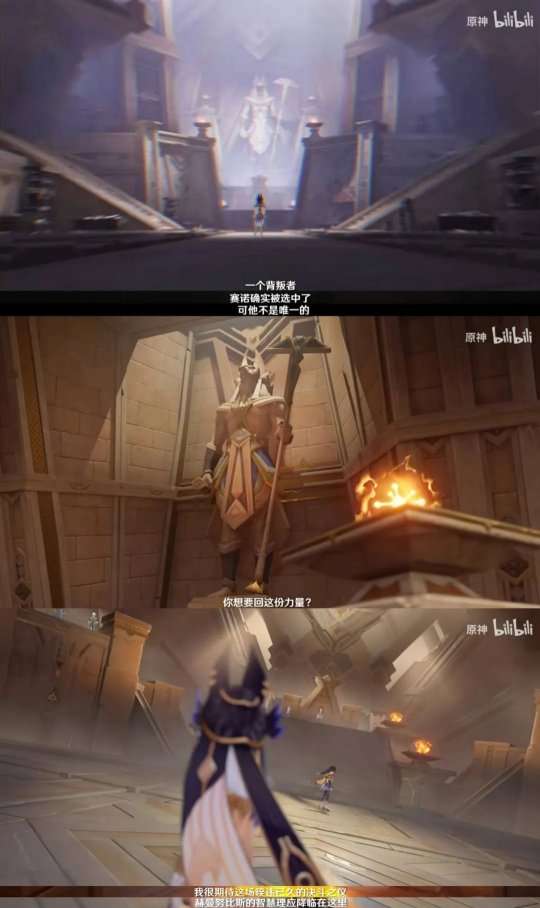 接下来开始正片,正片主要是有三条线,一条是「仆人」的传说任务,一条是赛诺的传说任务,还有一条是新地图的相关信息。最开始是说了一段壁炉之家的事,然后画面闪过两个人影,「仆人」也跟了上去