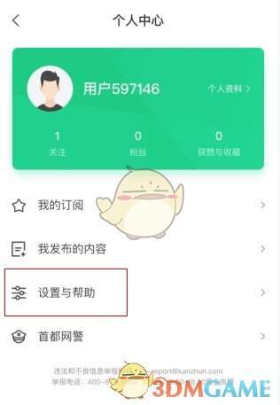1、在个人中心点击【设置与帮助】