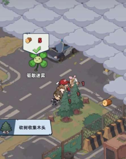 在探索地图场景的时候会遇到大量丧尸,作为后期解锁的地图,整体的挑战难度比较高,玩家要多去携带一些战力较强的角色,探索场景的过程中,会发现大量的应急罐头或者武器,可以仔细观察场景,把这些物资都收集起来,在探索场景的过程中,还会有很多区域被迷雾覆盖,玩家要去寻找迷雾周边的四叶草,消耗特定的木材之后,四叶草可以驱除周围迷雾,帮助玩家发现可以前进的道路,一般四叶草所需的木材都会在周边出现,玩家可以操控角色,先去完成木材收集。