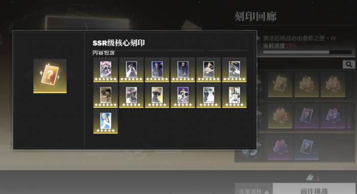 在卡池的保底资源箱中,玩家也可以直接选择刻印宝箱,例如,刻印卡池的累积抽取次数,已经达到六十次时,可以获取一次保底宝箱即刻印重现箱,玩家在宝箱内,也能够获取SSR级别的刻印,于“灵骸“”副本内,玩家每次击败一个敌方单位,都可以获取稳定的刻印碎片数量,在及其之后,也能够合成刻印重现箱子。