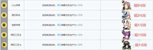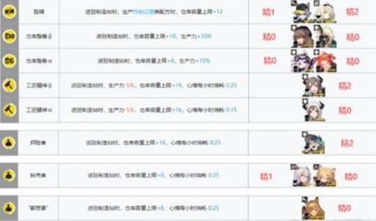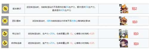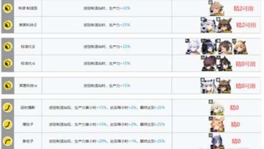 “砾+夜烟+斑点”的组合可以提供95%的生产力加成;而“砾+夜烟+清流(2个贸易站)”的组合可以提供105%的生产力加成。因此,我们建议玩家们尽量将砾、斑点和清流培养至精一,以获得更大的生产力提升。