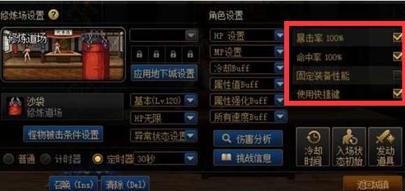 2、设置等级是140级、设置hp、暴击率百分百、命中率百分百、定时器设置。