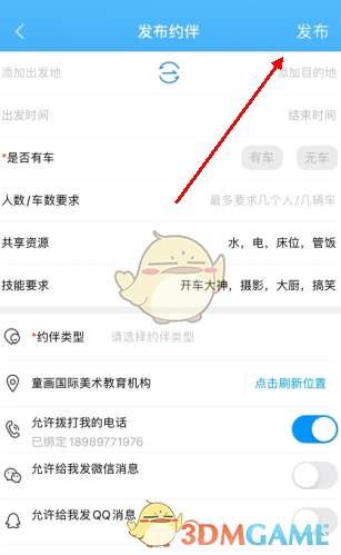 3、发布我们的约伴信息以及联系方式,进行发布即可!