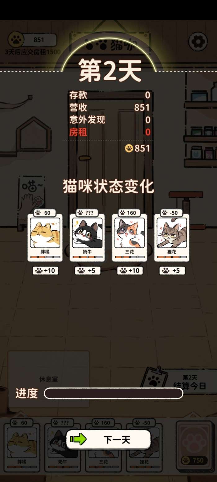 每只猫头上都能看到他们的经营能力,能力越高经营效果越好,能赚到的钱就越多