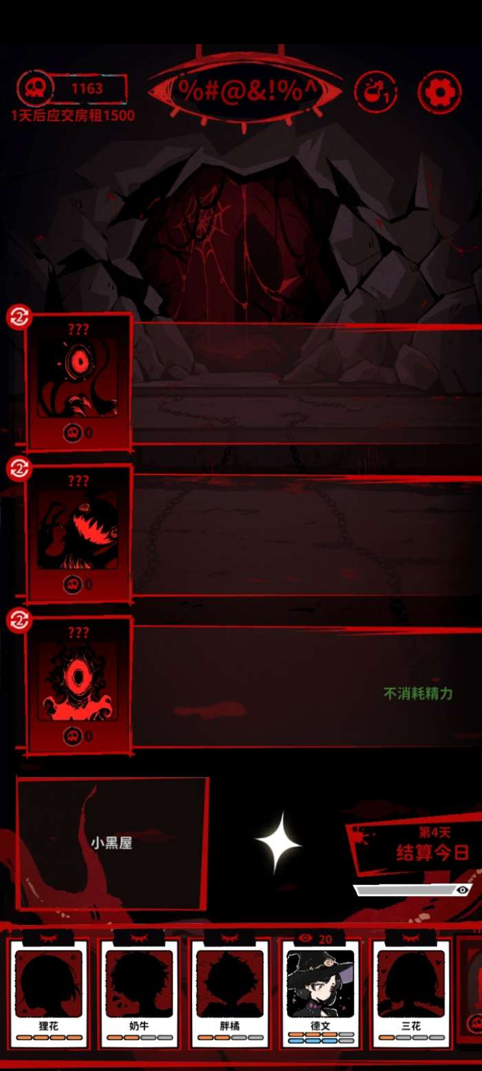 小技巧(其实也不能算技巧吧),触发影子鬼后,你可以直接随机关一个小黑屋(和德文一起关),然后剩下的全部上阵(注意不要留有“不消耗精力”的白字规则),最后运气好就是这一天直接结束,运气不好也能第二天直接处决精力全满的那只(注意猫咪的词条哈,胖橘是可以不消耗精力的,所以位置要放好,确保所有猫咪都能消耗精力)