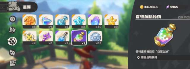 到了炼金塔之后就可以找到基础炼金界面,然后把刚才拿到的10个首领血脉全部放到材料栏,此时就会消耗一些基础的资源,在经过合成之后,就可以获得首领血脉秘药,这就是精灵在血脉觉醒时的核心道具,因此一定要选择妥善的保存。接下来自然就是给目标的精灵使用秘药,确定好要进化的精灵,例如经典的火神,这就是具备进化潜力的精灵。在打开背包之后找到药物点击使用,然后选择要觉醒的精灵,只要符合进化条就可以使用。