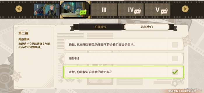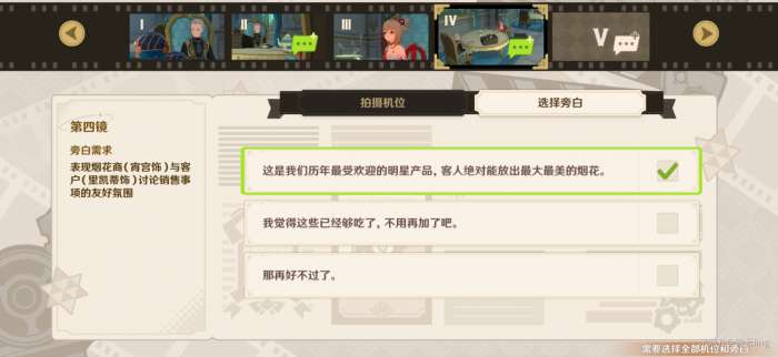 2.部分镜头有旁白需求,根据故事,选择正确的旁白