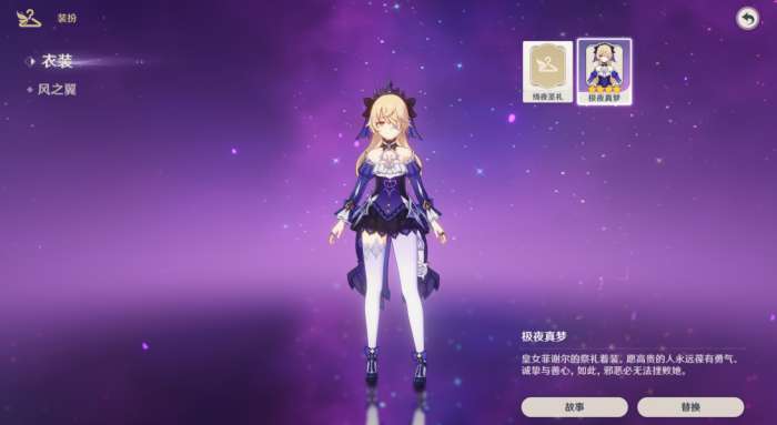 另外在活动【幻声留形】可以获取菲谢尔衣装「极夜真梦」。(错过活动,需在商店花1680创世结晶购买!)