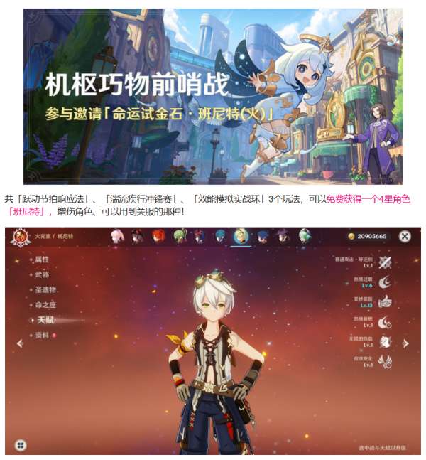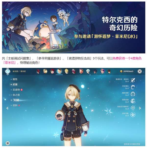 一共「未知之星」、「诡梦之星」和「命定之星」3个玩法,可以免费获得一个4星角色「菲谢尔」,是非常优秀的挂雷副c角色。在2.8版本也送了一只,并还送了新衣装,是唯一一个送了2次并送了衣装的角色。