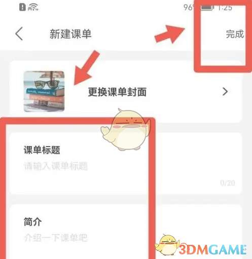 4、进入新建课单窗口,输入课单标题和简介,点击【完成】。