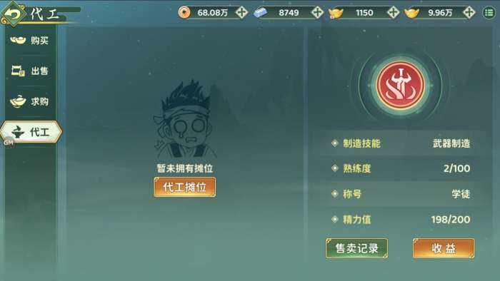你可以当摊主,通过设置精力值价格的形式将自己的制造技能上架,供其他少侠使用,消耗你的精力值,却能帮你涨熟练度