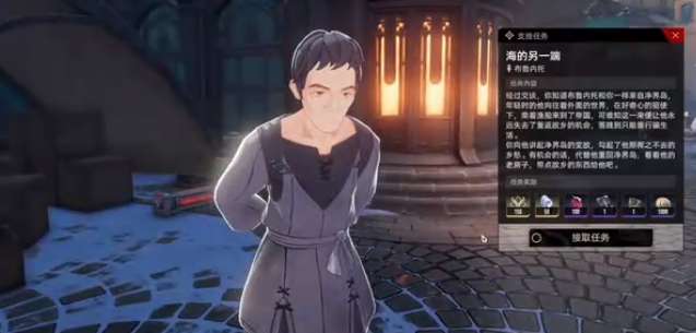 其实钥匙在接取任务时,布里内托就已经塞到你的背包里面,并不需要去额外的寻找。打开背包在任务道具栏里面就可以看到,点击一下宝箱,然后使用钥匙就可以将箱子打开。里面就有这次任务所需要的宝贝,还有500个金币以及10个初级体力药水,这些就等同于是白嫖的奖励。在拿到里面的东西之后,不需要重新去找布里内托,直接点击任务面板就可以提交任务,结束这一次的海的另一端支线任务。在完成之后就可以获得相应的奖励,但这里也有一些小建议,这一个小岛上会有很多的小虫子,虽然不会咬人,但总是会干扰玩家,所以建议准备好驱虫器。