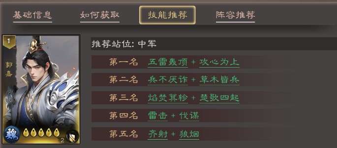 郭嘉是魏阵营谋略型辅助兼输出武将,定位为“谋略输出+状态辅助”,梯度属于T1级谋略核心。