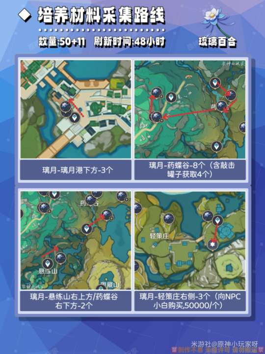 5️⃣培养材料采集路线(详见图⑤-图⑧)