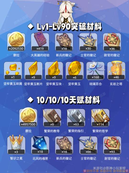 1️⃣L1-L90级突破材料(详见图②)