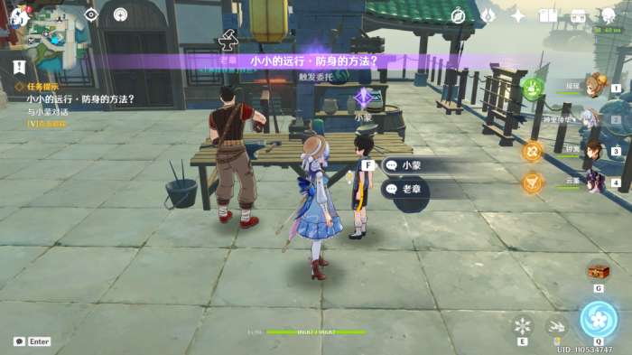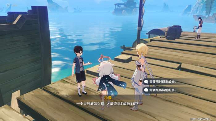 来到璃月港与小蒙对话开始委托,他正在思考怎样变成熟。
