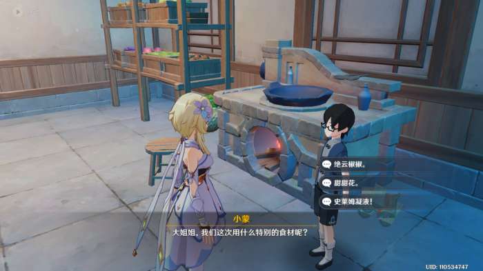 之后会让旅行者添加特殊材料,这个是要你给的,什么多就选啥吧。