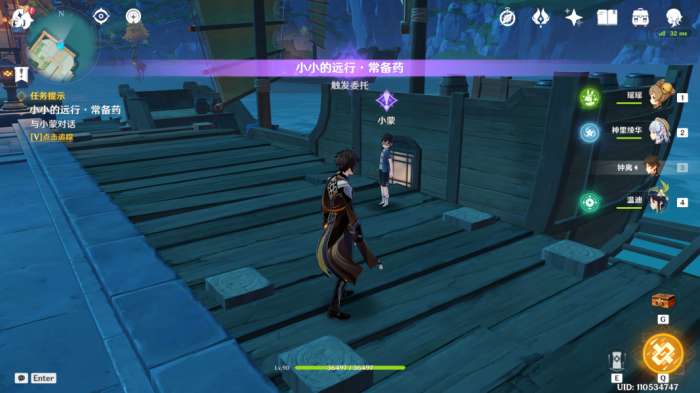 小蒙想带点旅行用的药,让旅行者一起去抓药。