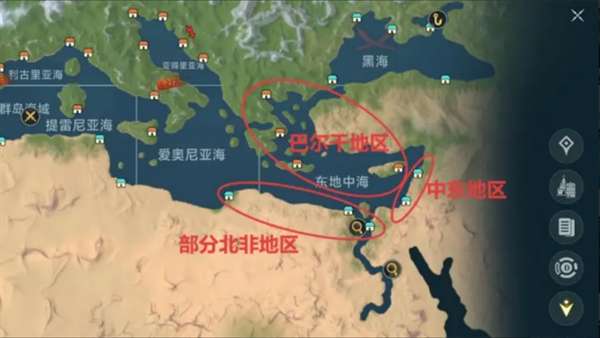终点(东地中海):所有属于巴尔干、中东与北非文化圈的港口(土耳其太远了,不推荐)。