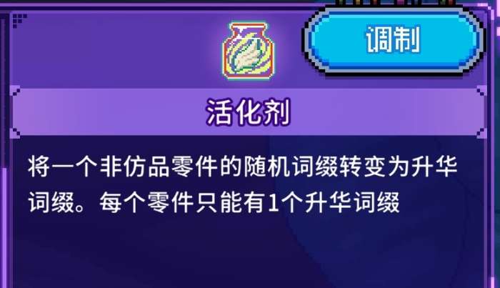 活化剂,把任意词缀升级为该词缀的T0级词缀,注意该词缀给有T0级词缀。不使用这个药剂的话最多只能刷到T1级词缀。
